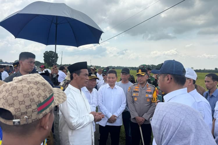 Majalengka – Menteri Pertanian RI (Mentan RI) Andi Amran Sulaiman meninjau lahan kesiapan panen raya yang akan dihadiri Presiden RI Prabowo, pada Senin 7 April 2025 besok, di Desa Gandawesi, Kecamatan Ligung, Kabupaten Majalengka, Jawa Barat.